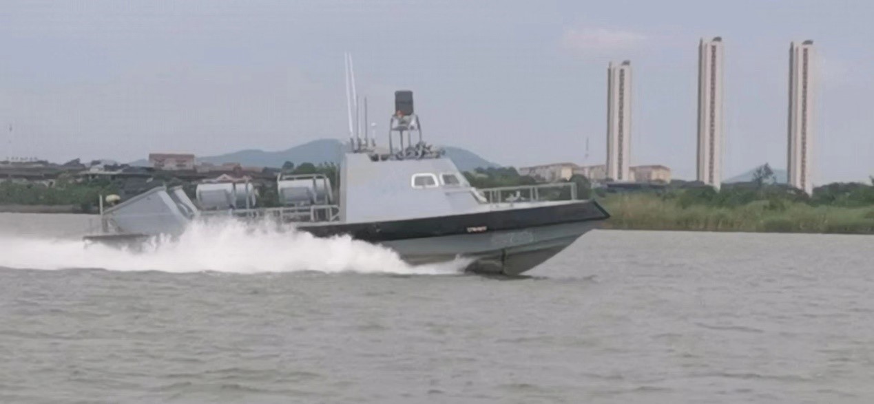 该艇由英国威廉集团官网工业与鱼鹰科技(全资子公司)、天海防务、泰州金海运及相关院校于2021年5月开始研发,由泰州金海运建造,2022年5月到达湖试基地进行测试。经过湖泊试验,该艇航速达到30余节,自主路径规划、多艇协同控制、电子防御等性能基本达到设计要求。