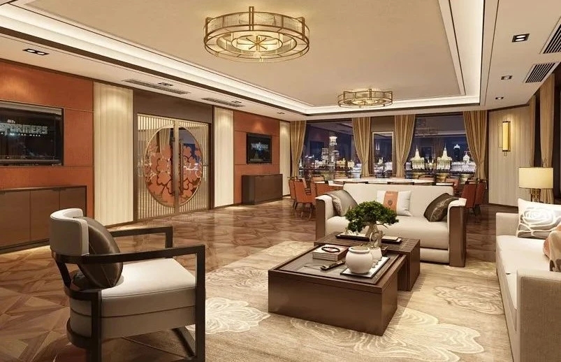 二层甲板设玻璃围壁贵宾舱室及大面积观光甲板,可实现全景观光。
