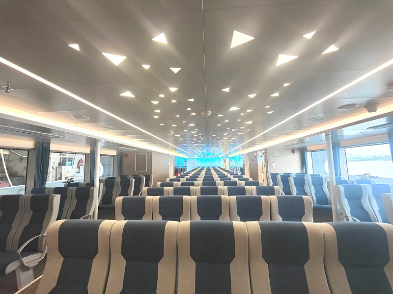 该船长67.86m,型宽10.60m,型深4.30m,集高安全性,高舒适性,高环保性于一体,抗风等级达9级,投入运营后可解决舟山东极航线节假日高峰期及恶劣天气下应急疏客运力不足问题,提升东极航线整体营运能力。