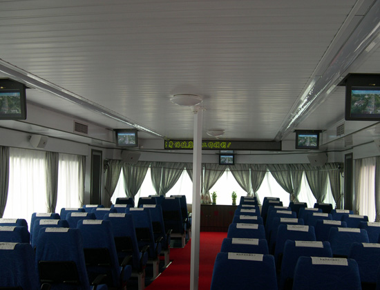 公司承接本船的装饰设计和施工,本船主要航行于山东青岛市胶州湾、黄岛区及沿海航区,属于沿海航区,兼顾内河A、B级航区。主要用作海上旅游观光、贵宾接待、人员交通,以及上级领导视察接待,是第一艘采用玻璃幕墙的沿海客船。